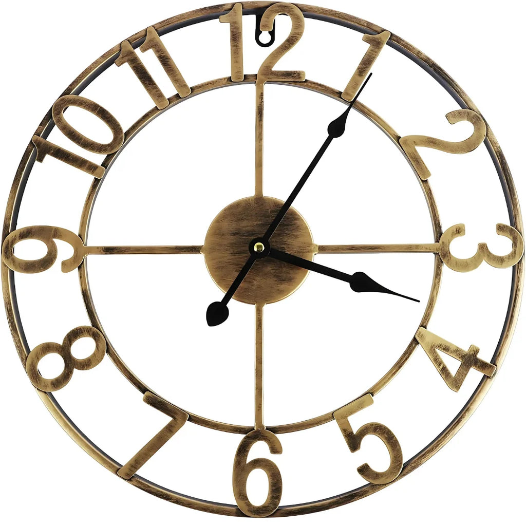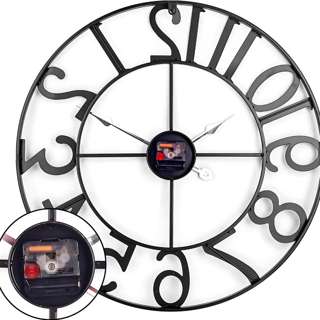 Add a touch of rustic elegance to your space with this Large Round Wall Clock. Combining a vintage iron design with an accurate analog display, this clock doubles as a functional timepiece and an artistic centerpiece. The non-ticking, silent movement ensures a peaceful environment, perfect for any room in your home or workspace.