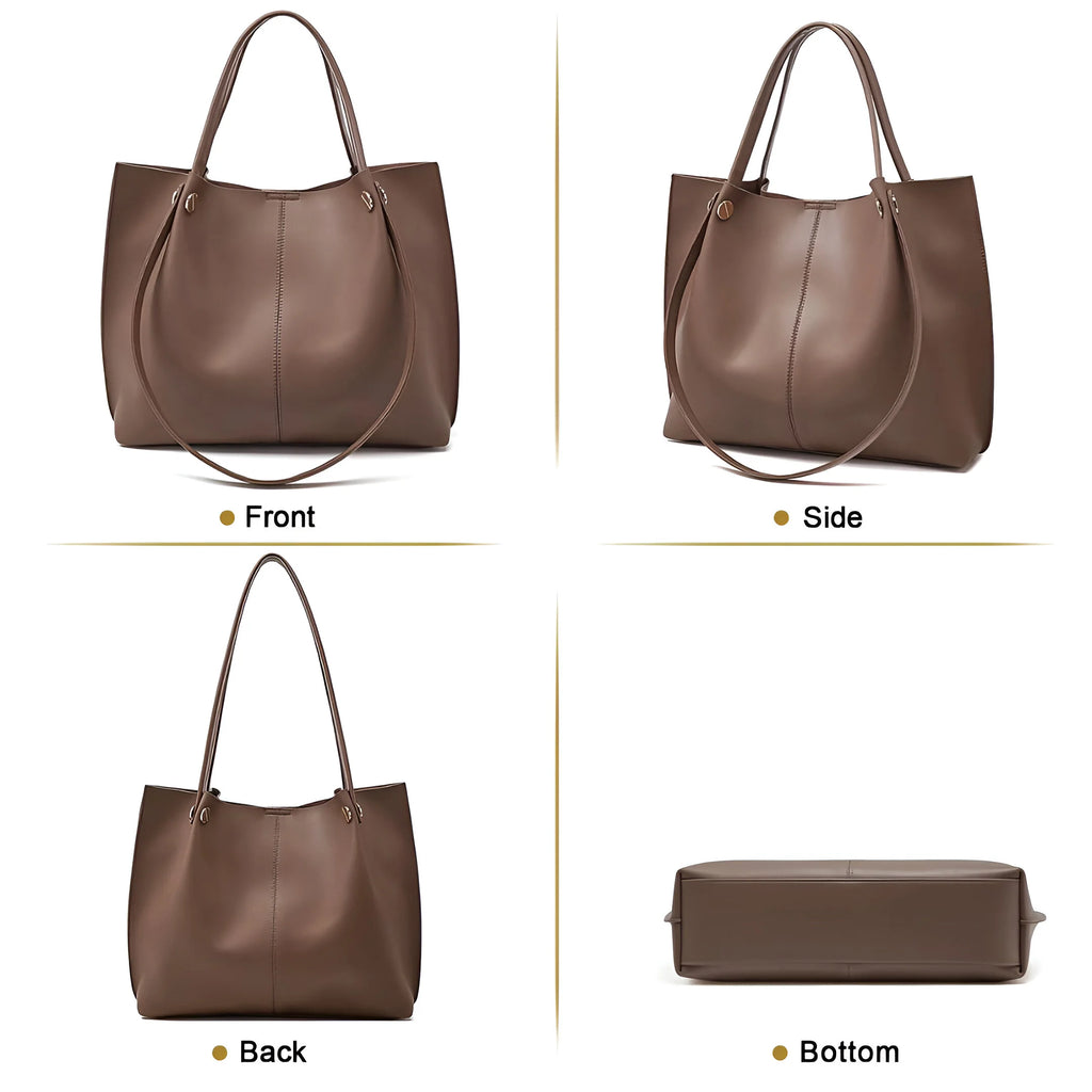 Designed for flexibility, this tote includes a smaller inner purse with secure zipper closure for valuables. The inner purse can rotate outward to function as a convenient top-handle bag, or stay inside for a streamlined tote style. The unlined interior, with its natural leather texture, adds both durability and a luxurious tactile feel.