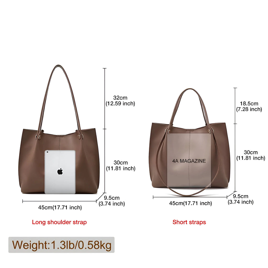 This tote bag offers a blend of practicality and style, featuring a fixed shoulder strap and sturdy top handles for versatile carrying options. Its timeless style and functional size make it an essential accessory for work, shopping, or casual outings.