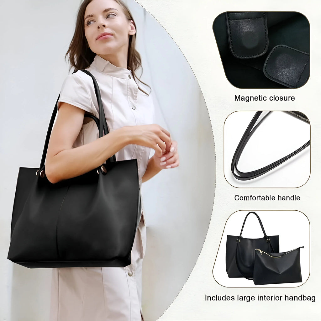 - Closure: Zipper for the inner purse; open tote with top handles.