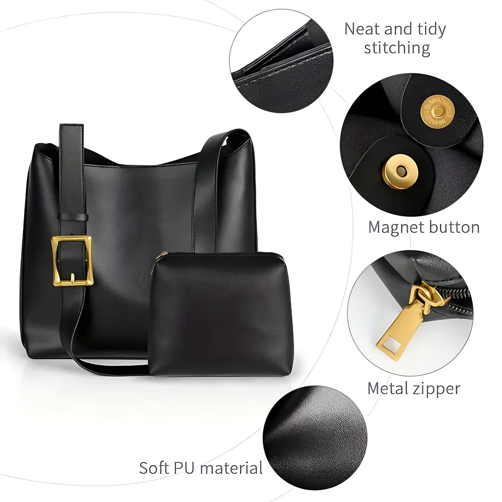 Women's Adjustable Strap Two-Piece Leather Bag Set