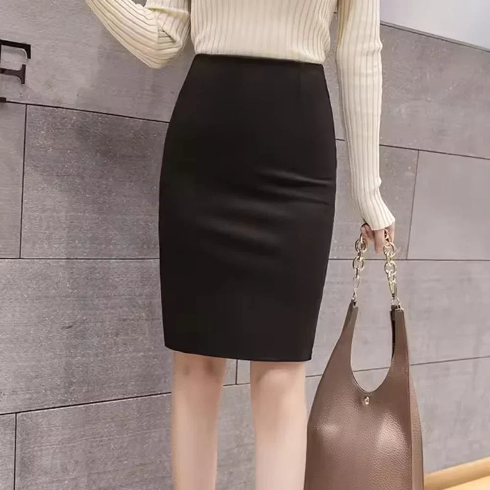 Stylish, elegant midi pencil skirt with back slit