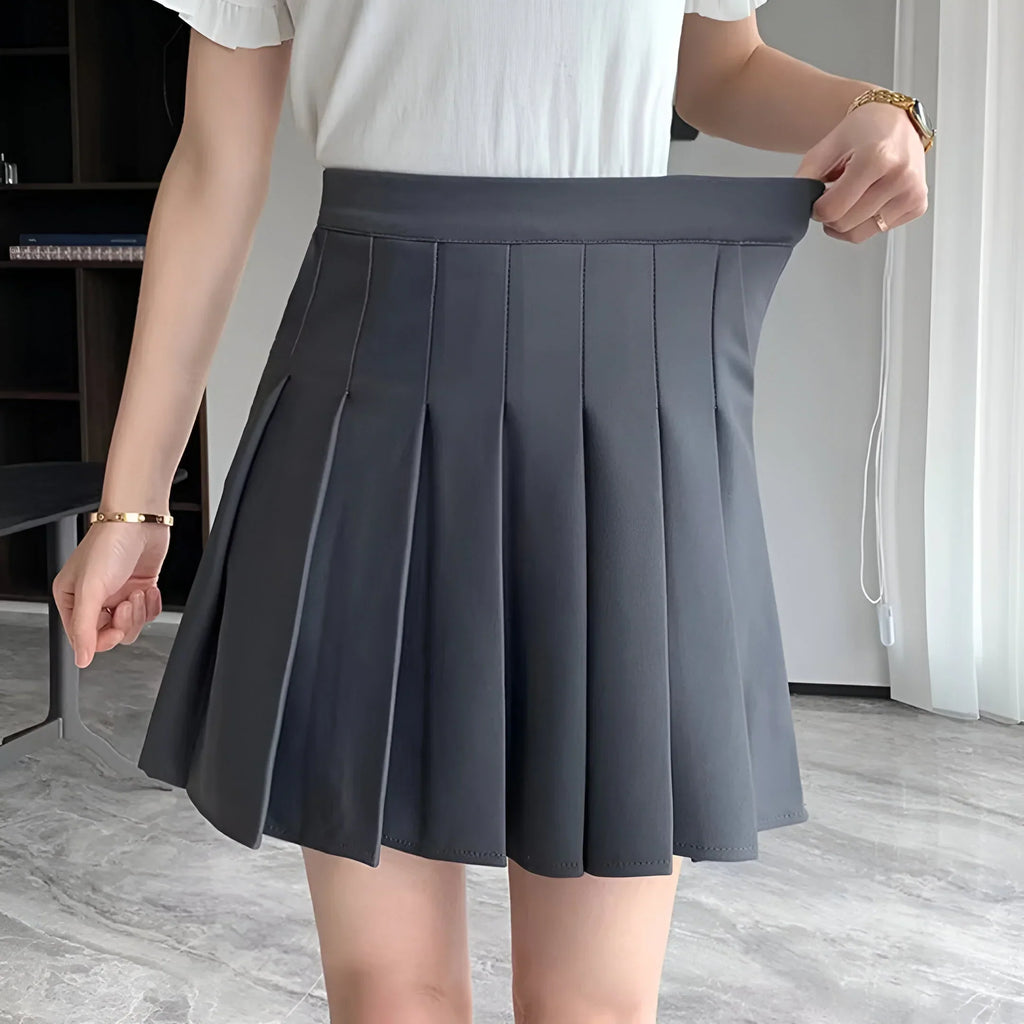 Crafted from a premium cotton blend, this high-waist pleated mini skirt offers the perfect balance of comfort and durability. The elastic waistband provides a secure, adjustable fit and ensures all-day comfort without compromising on style. Whether for school, work, or a casual outing, this skirt keeps you effortlessly well-dressed.