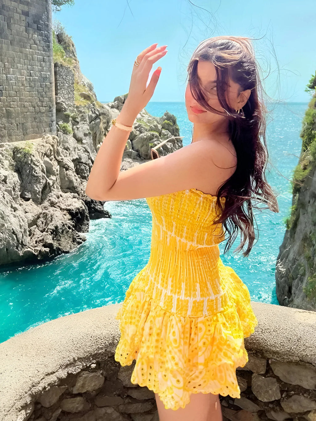- Fit: Shirred bodice with a flared skirt for a flattering silhouette.