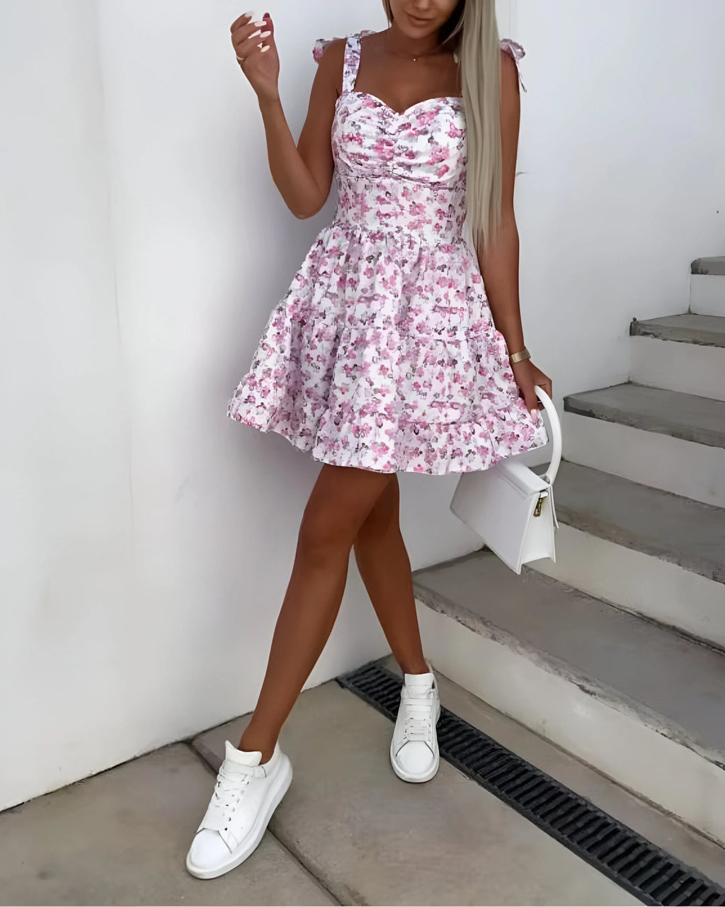 Step into effortless charm with this printed waist fold-up dress, designed to keep you stylish and comfortable throughout spring and summer. Crafted from soft, breathable fabric, it drapes beautifully while allowing for ease of movement. Whether you're heading to a picnic, a casual brunch, or a weekend stroll, this dress is the perfect go-to for sunny days.