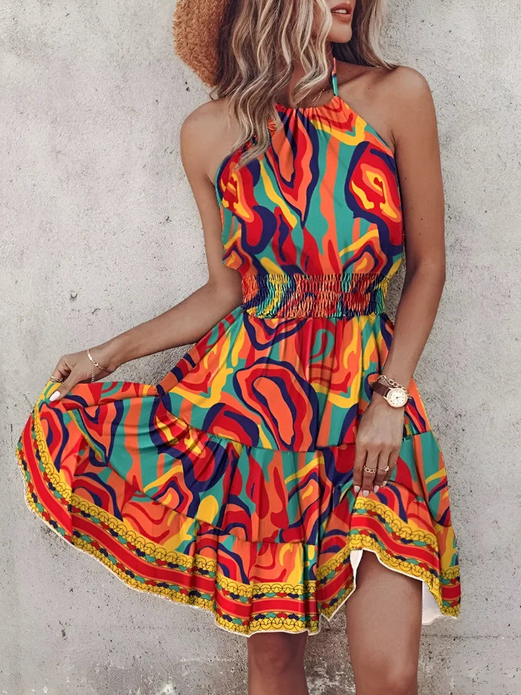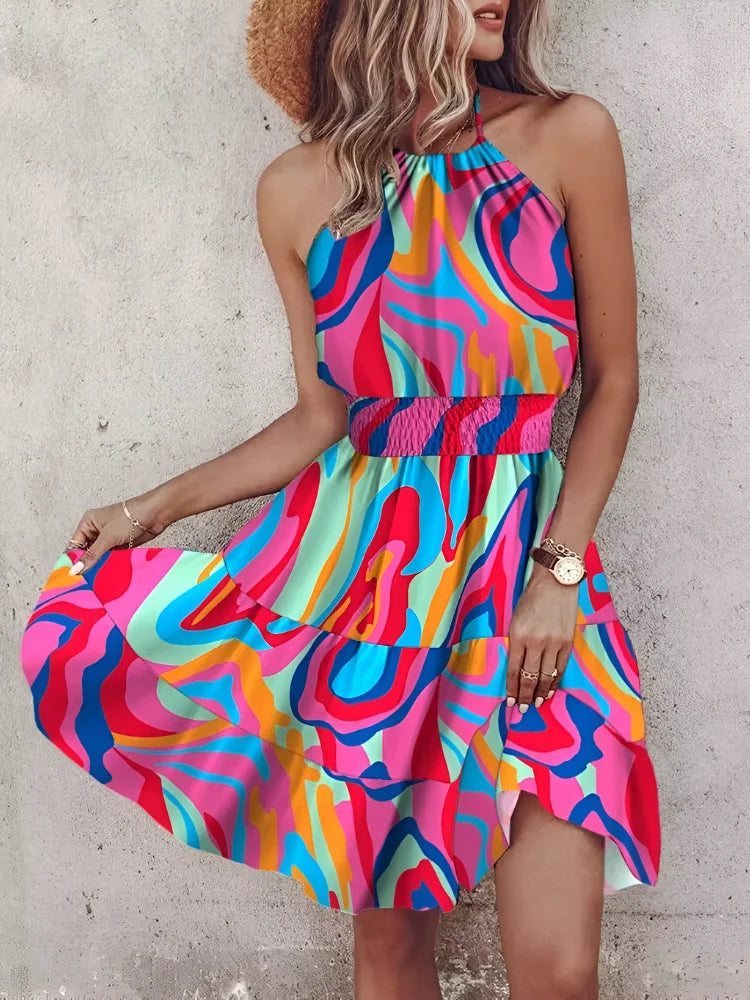 Featuring a trendy halter neckline, this dress highlights your shoulders and collarbones, giving you a chic and flattering look. The design adds just the right amount of elegance to your summer wardrobe, making it an ideal choice for casual events.