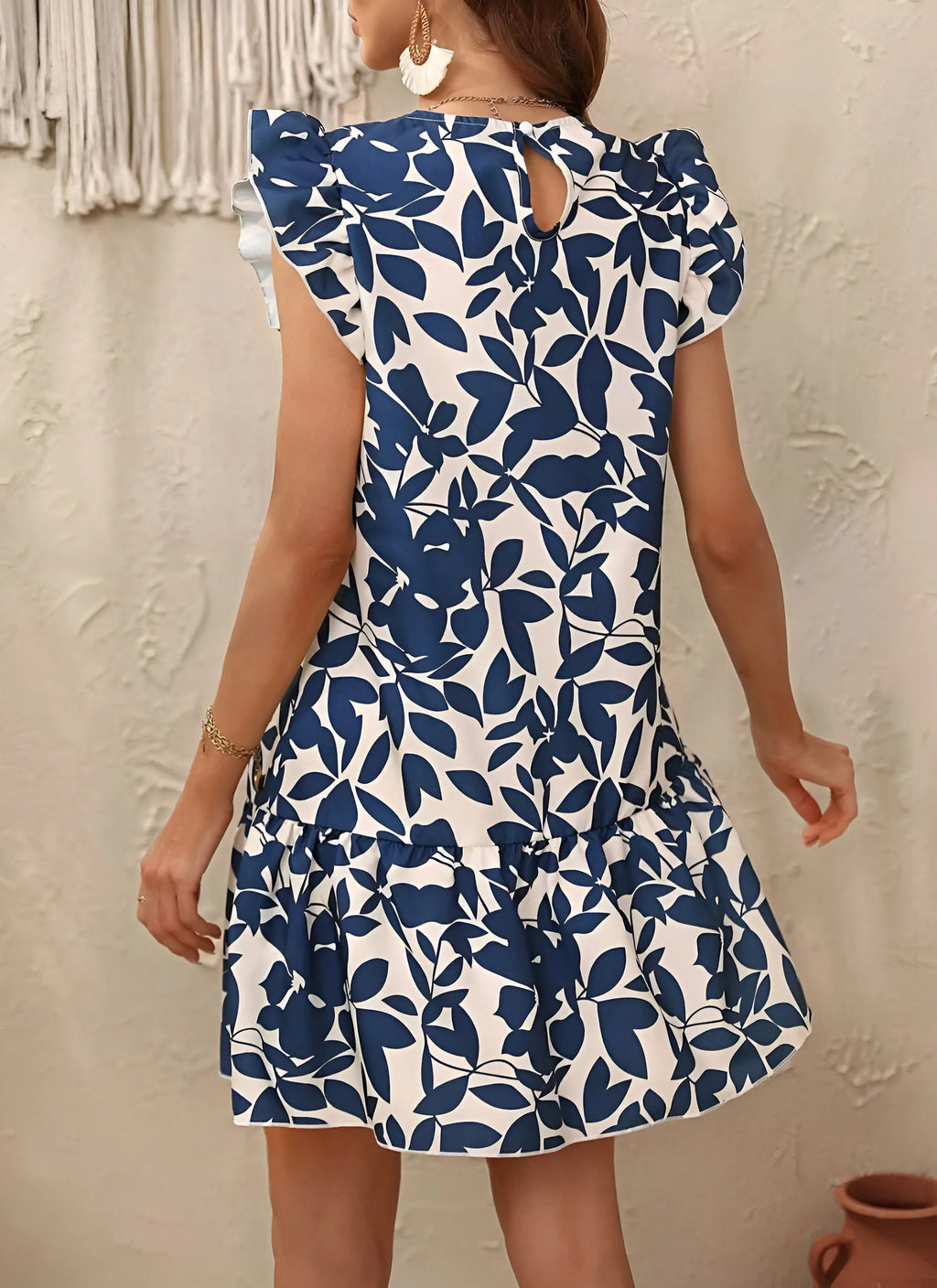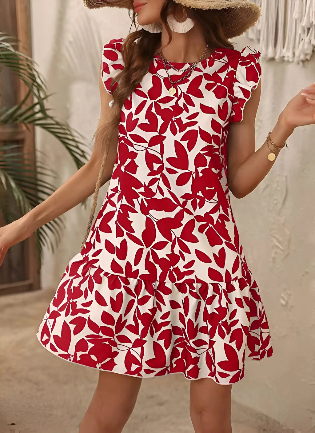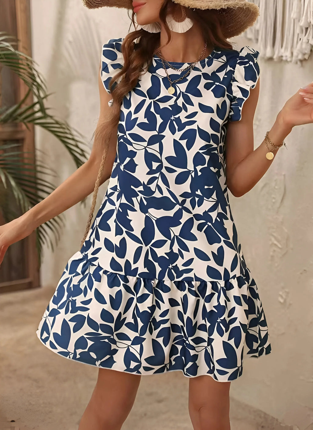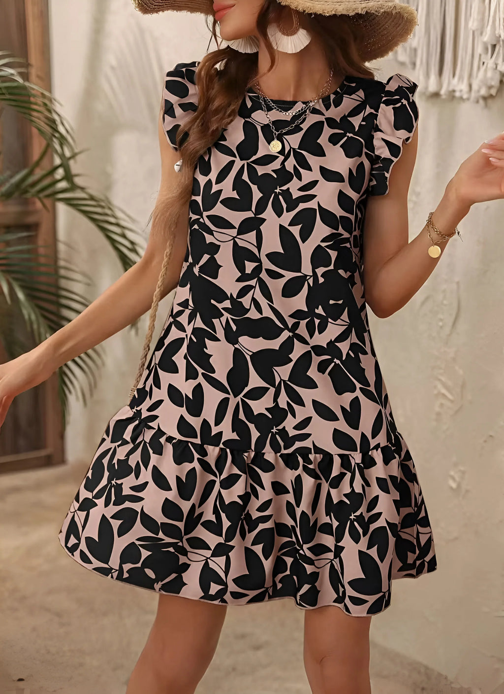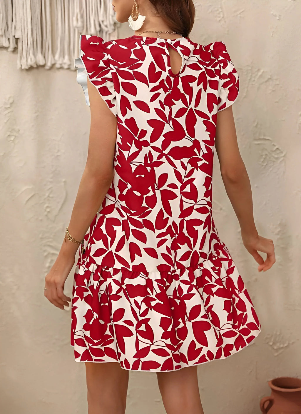Designed with everyday wear in mind, this mini dress boasts a loose, relaxed fit that gives you freedom to move while keeping you cool. The cap sleeves with delicate ruffle details bring a feminine touch, and the round neckline adds a classic vibe. With the ruffle hemline providing a playful finish, this dress is ideal for everything from beach trips to afternoon picnics. Pair it with your favorite sandals or sneakers for the perfect laid-back look.