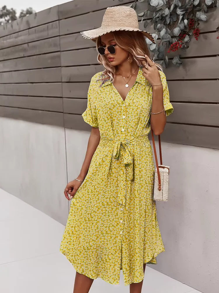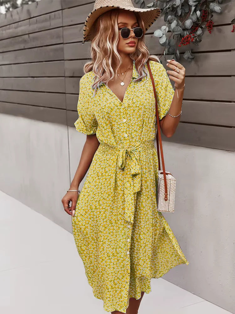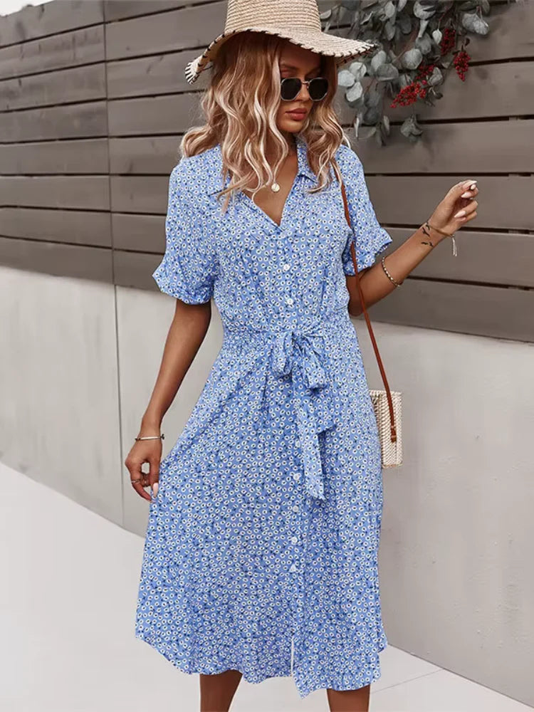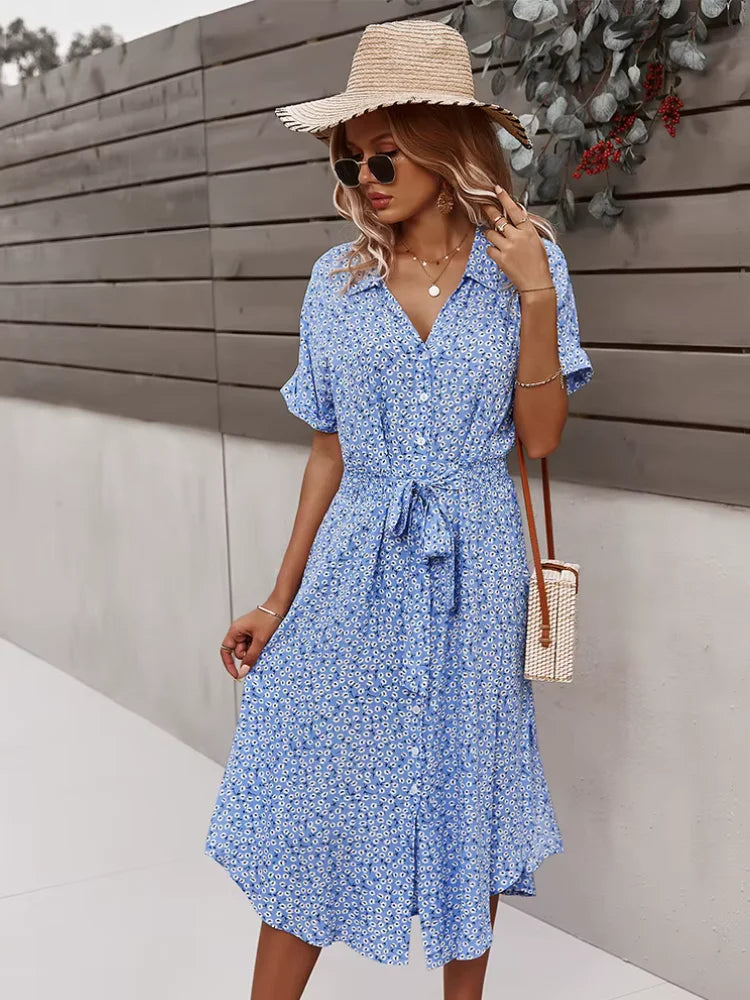 Crafted from soft, breathable viscose, this floral print dress provides unmatched comfort throughout the day. Its lightweight texture feels gentle and cool on the skin, making it perfect for warm summer days. Whether you're heading out for a stroll or lounging in the sun, this dress ensures effortless style and ease.