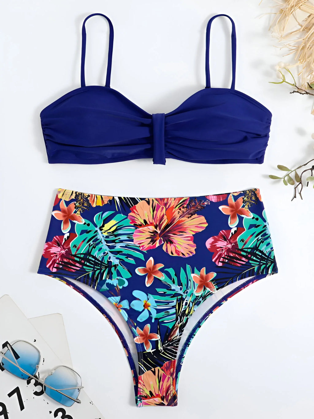 This women's Two-Piece floral bikini is made from high-level nylon and spandex material, ensuring durability and comfort. It’s a must-have Two-Piece swimsuit for summer, featuring a unique floral patchwork pattern that adds a touch of charm to your beachwear collection.