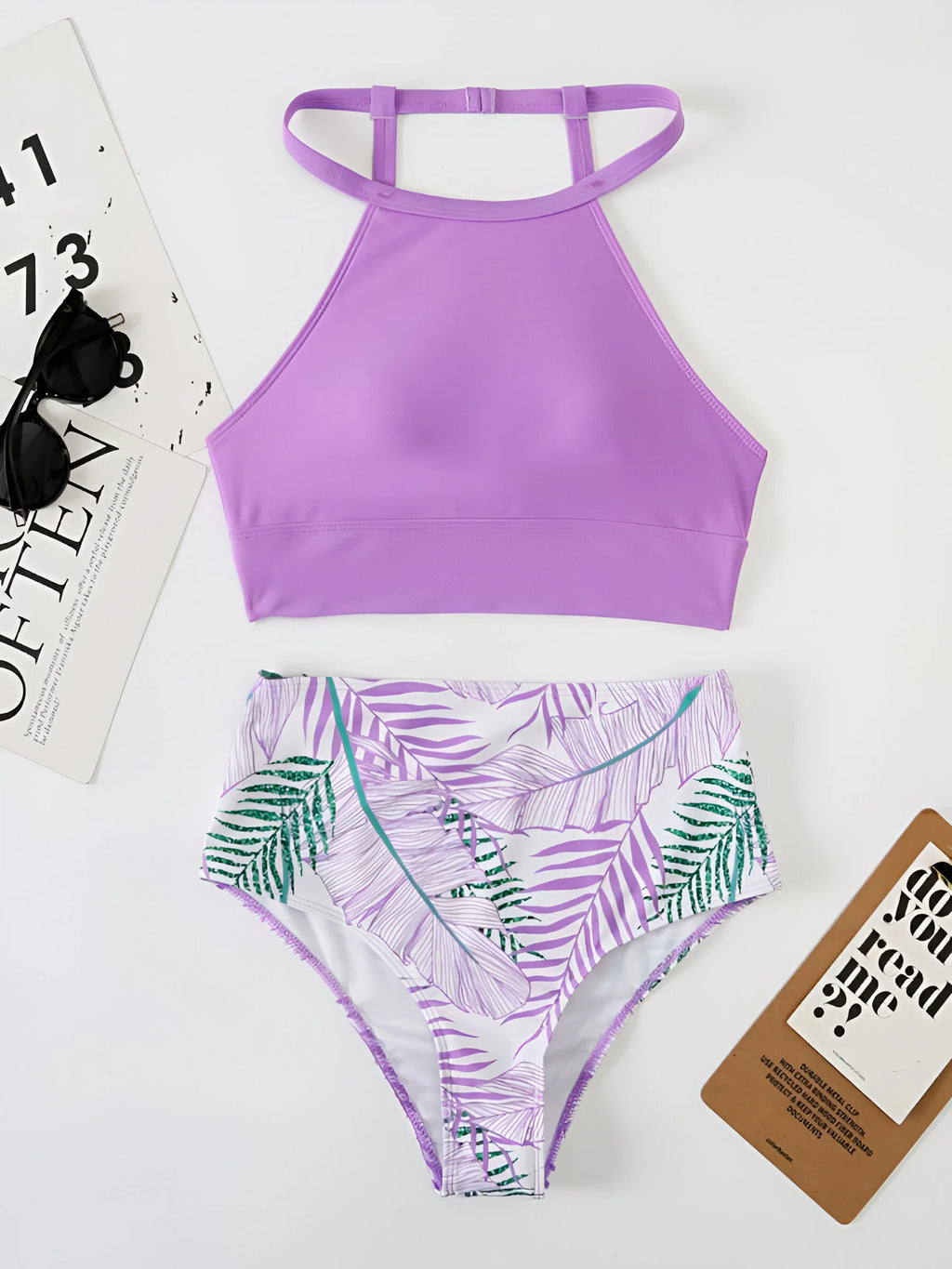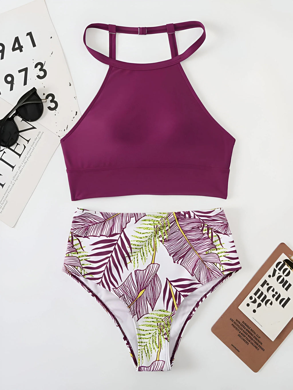 Stay stylish and comfortable in this high-neck two-piece swimsuit—a perfect blend of fashion and functionality for all your summer activities!