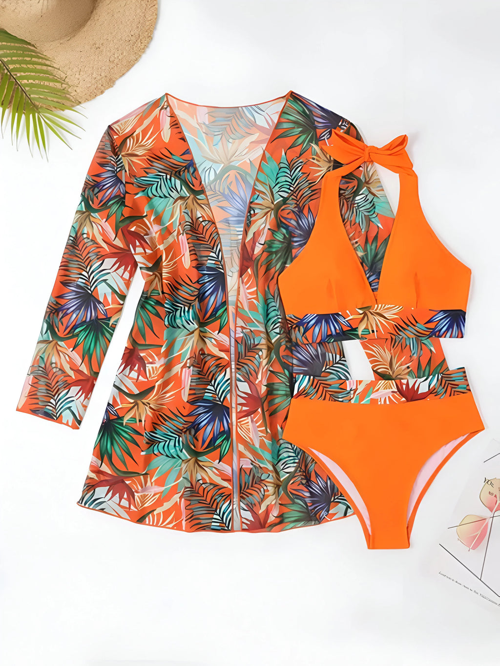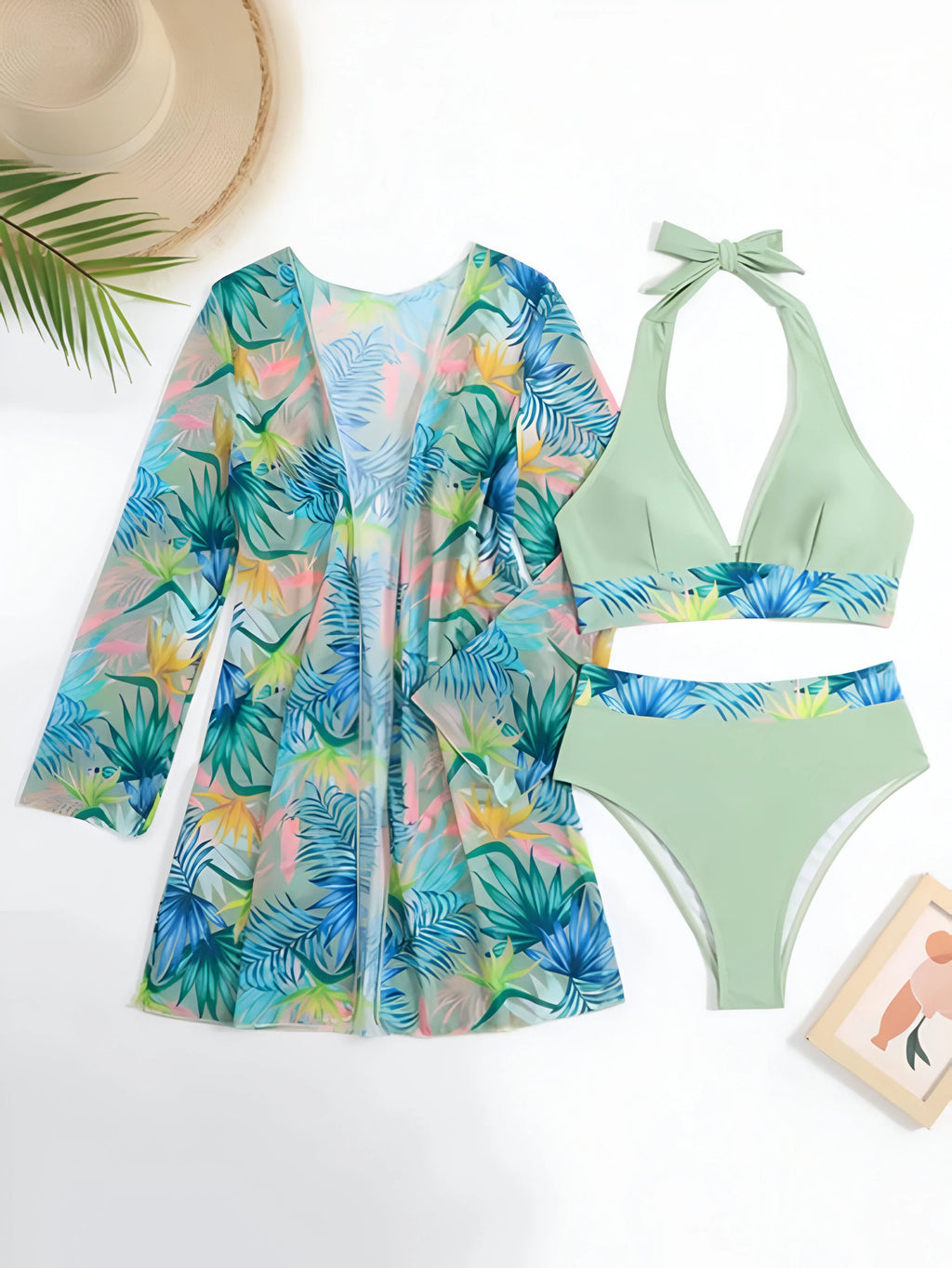 - Set Includes: Bikini top, bikini bottom, and matching cover-up.