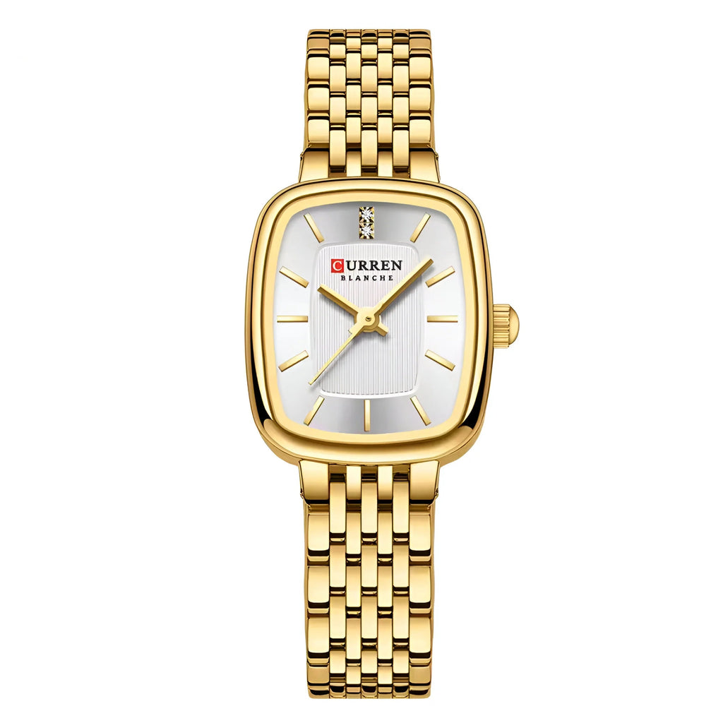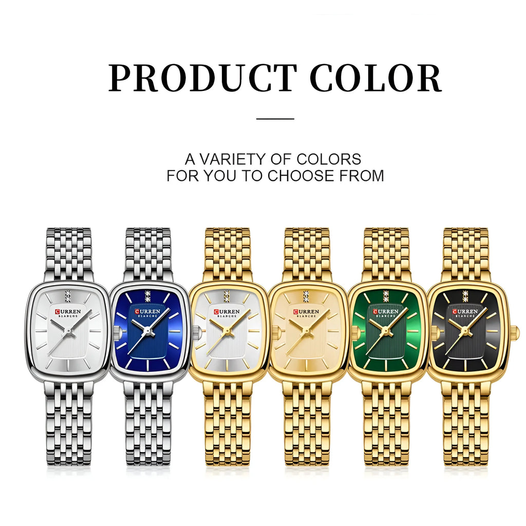 This CURREN women's rectangular watch blends modern sophistication with timeless style. Its sleek case, available in gold-tone or silver-tone, complements any outfit, whether for work, casual outings, or special events.