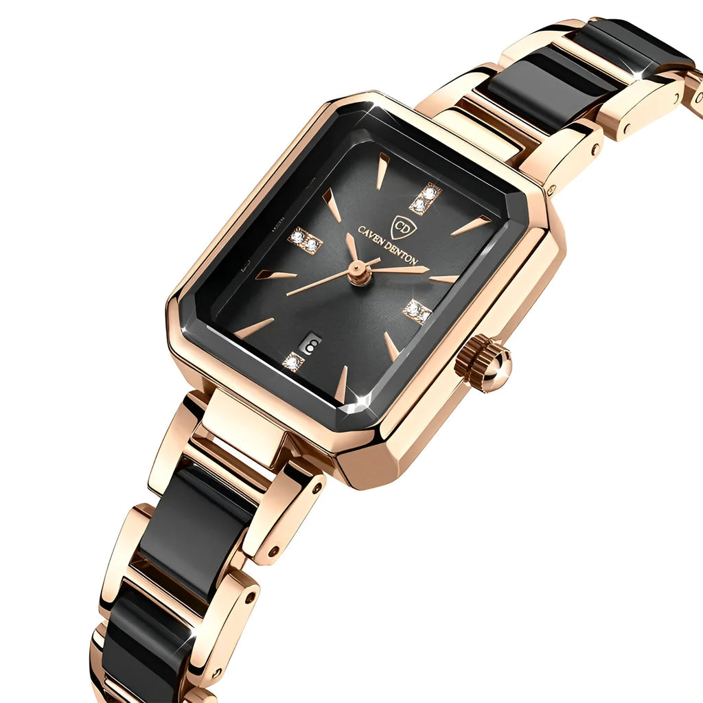 Designed for those who appreciate refined style, this women's quartz watch blends style with everyday practicality. The square face, adorned with a diamond-encrusted bezel, adds a luxurious touch to any ensemble.