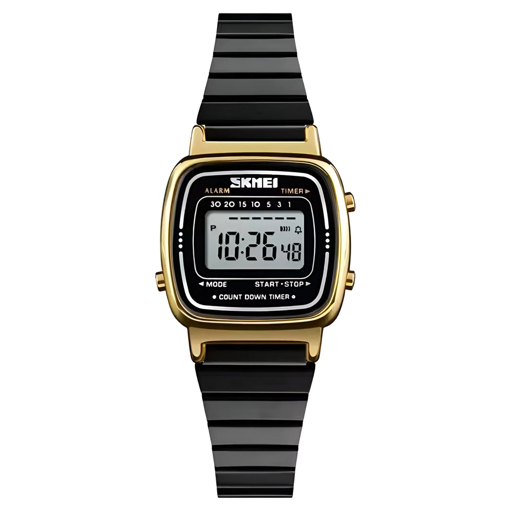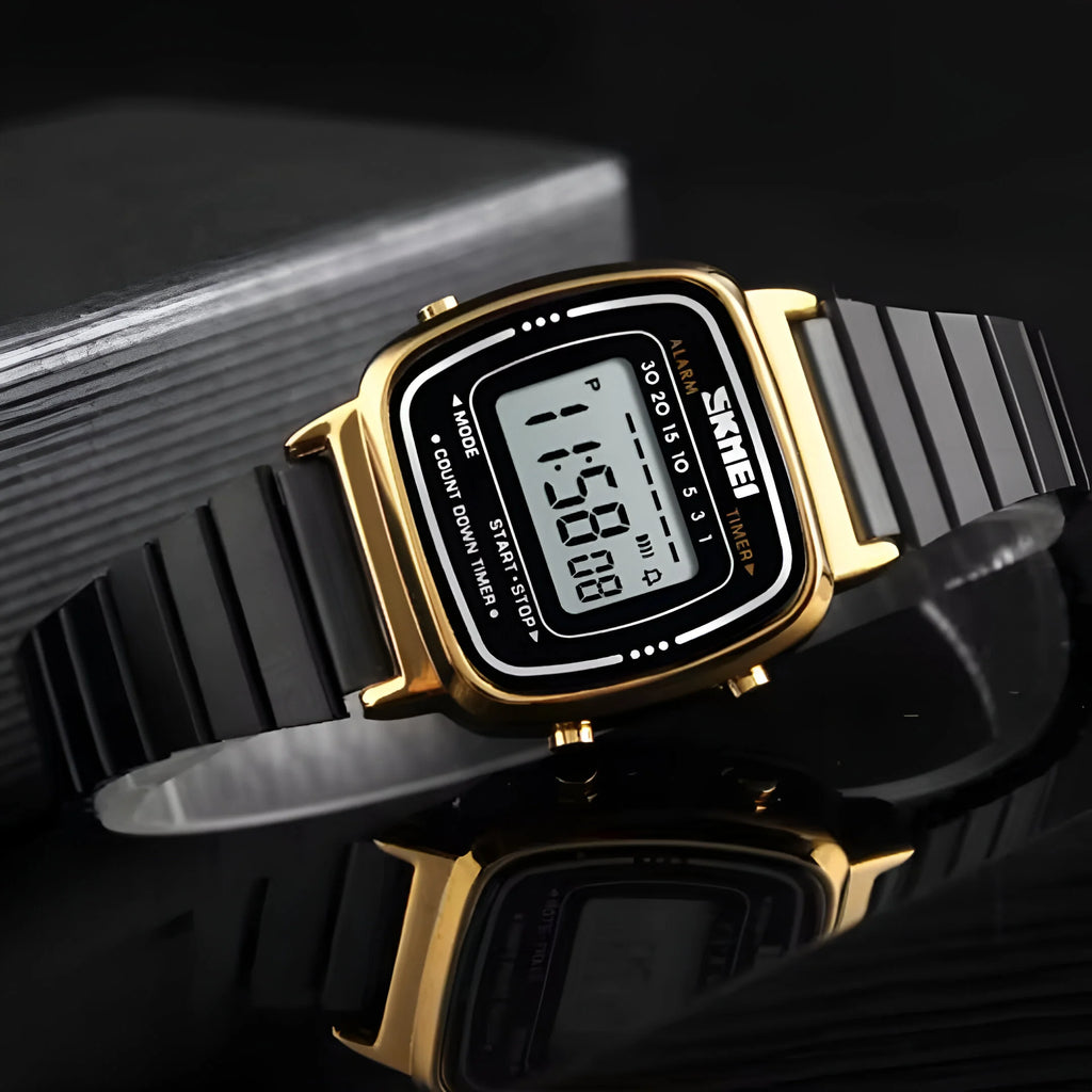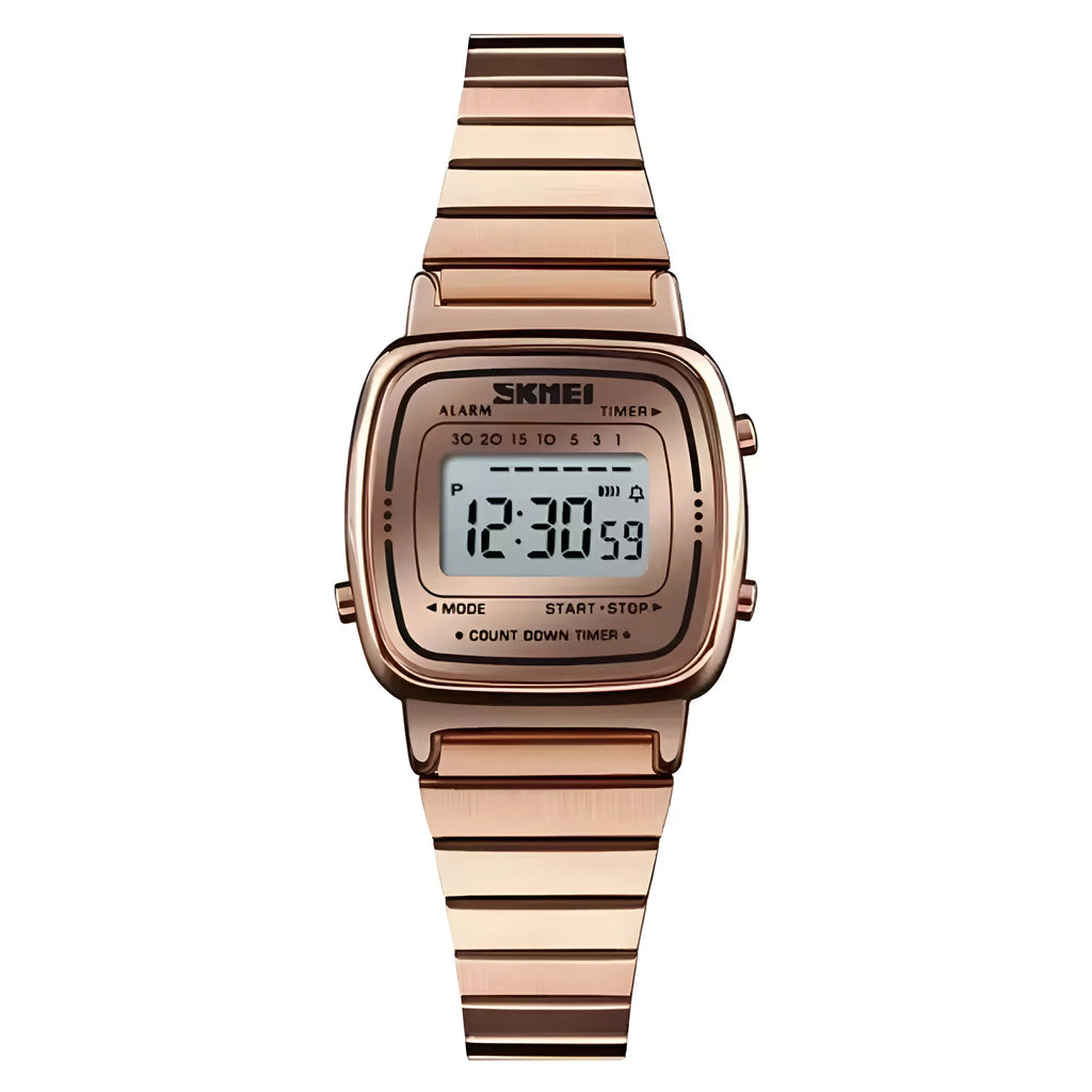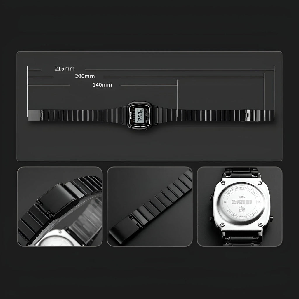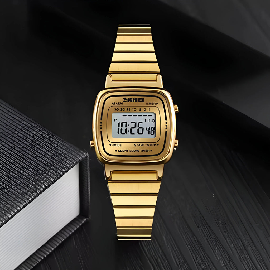 This sleek digital watch offers a modern design with a clear display and a comfortable stainless steel band. With multiple color options and water resistance, it’s perfect for everyday wear while keeping you on schedule with its smart features.