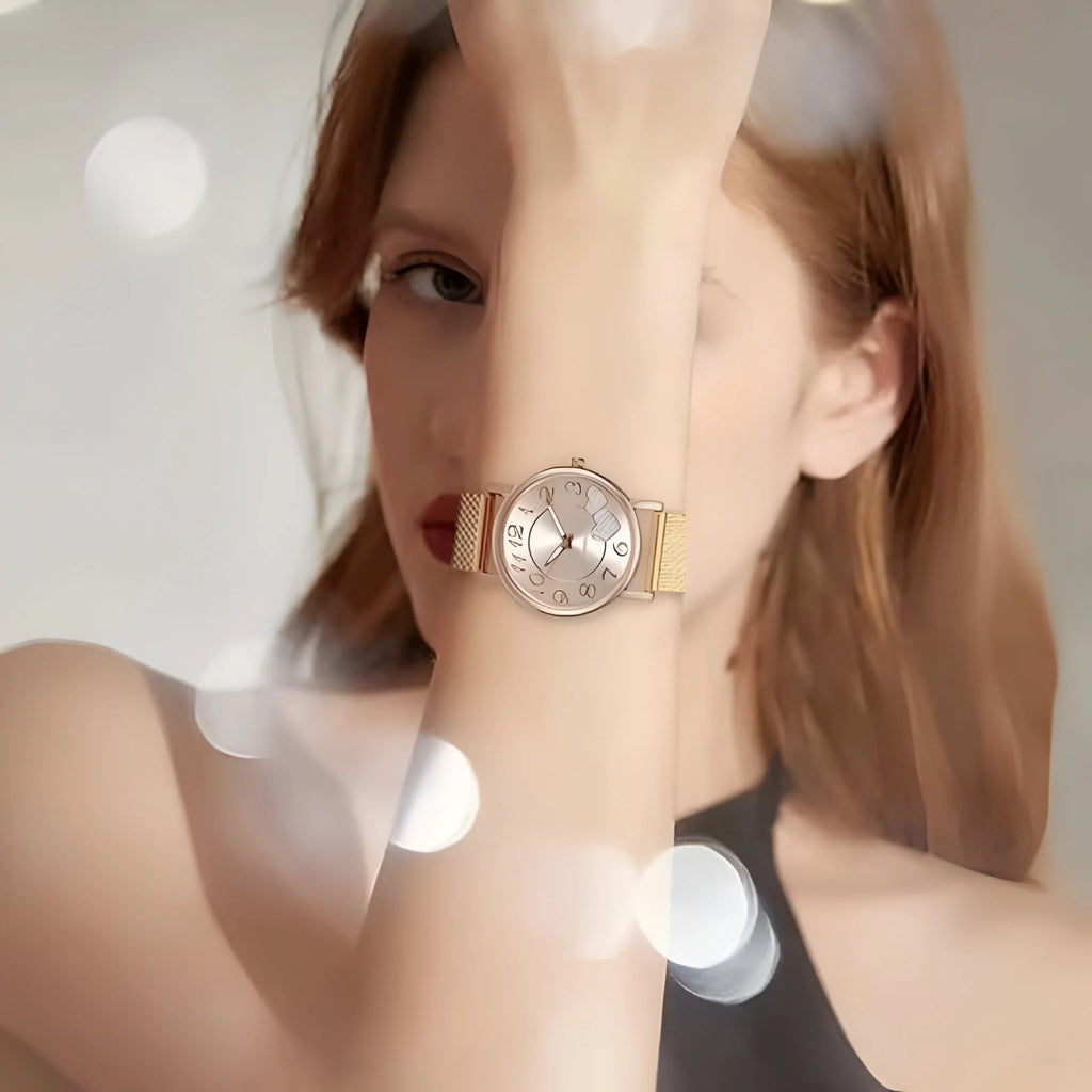 This beautifully crafted wristwatch combines simplicity with sophistication, making it the perfect accessory for any occasion. The sleek mesh belt adds a modern touch while ensuring a secure and comfortable fit. Whether you're heading to work, attending an event, or enjoying a casual day out, this watch enhances your look effortlessly.