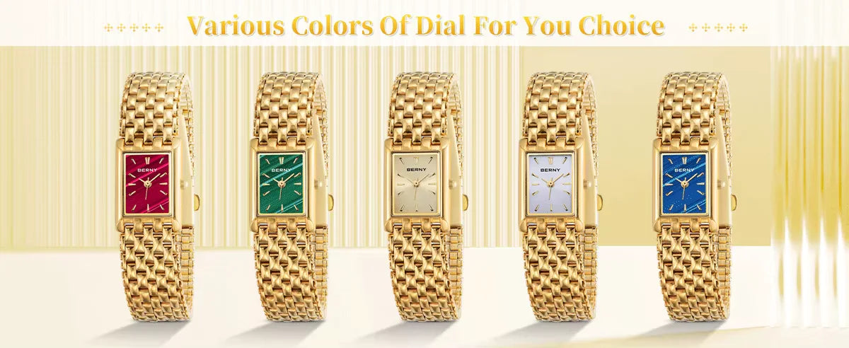 • Sleek Rectangular Case: A smooth, polished gold-plated finish for a sophisticated look.